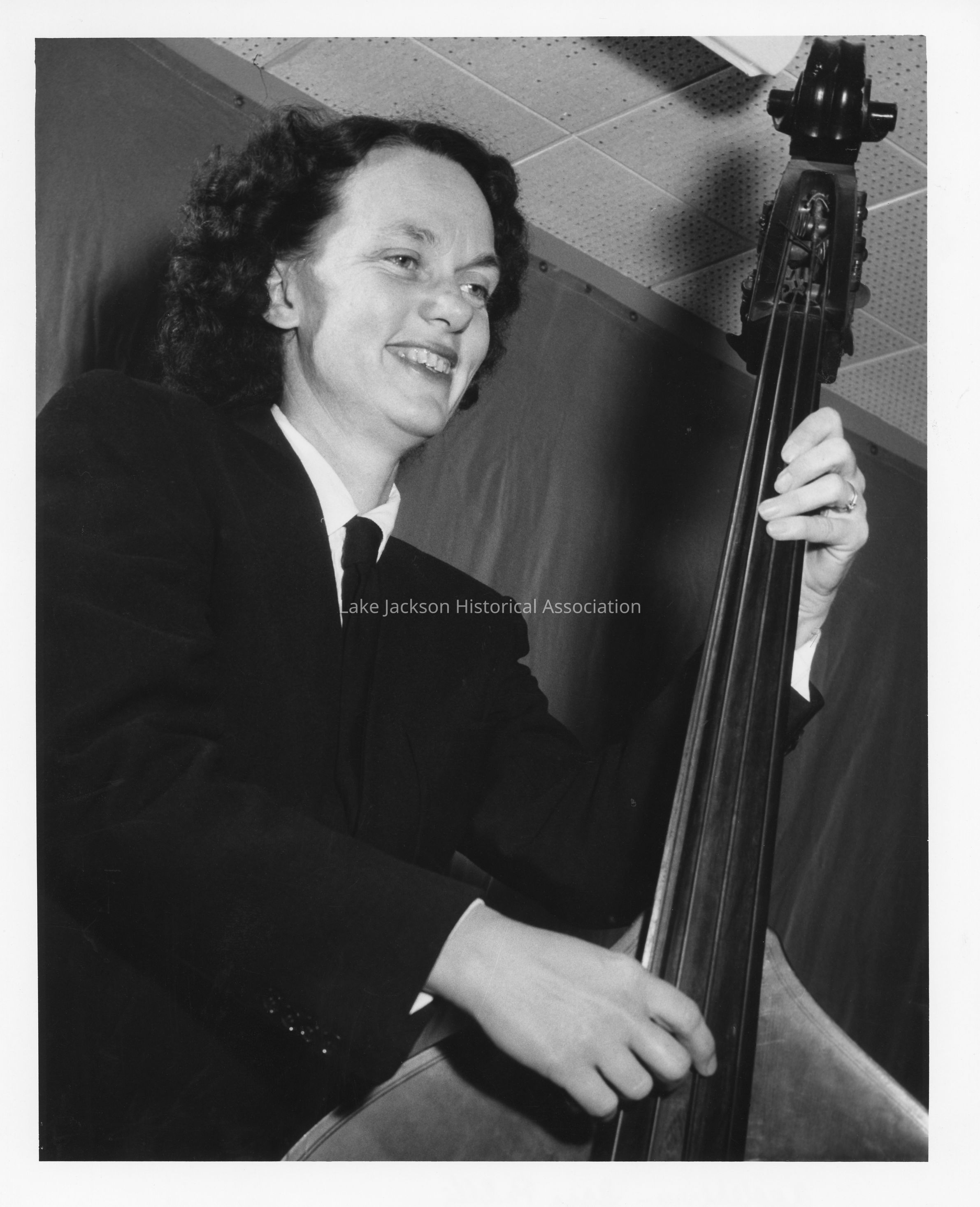 A Black & White Photo of a lady playing a bass fiddle. Back of photo states: "Appleberry--bass fiddle".Collection