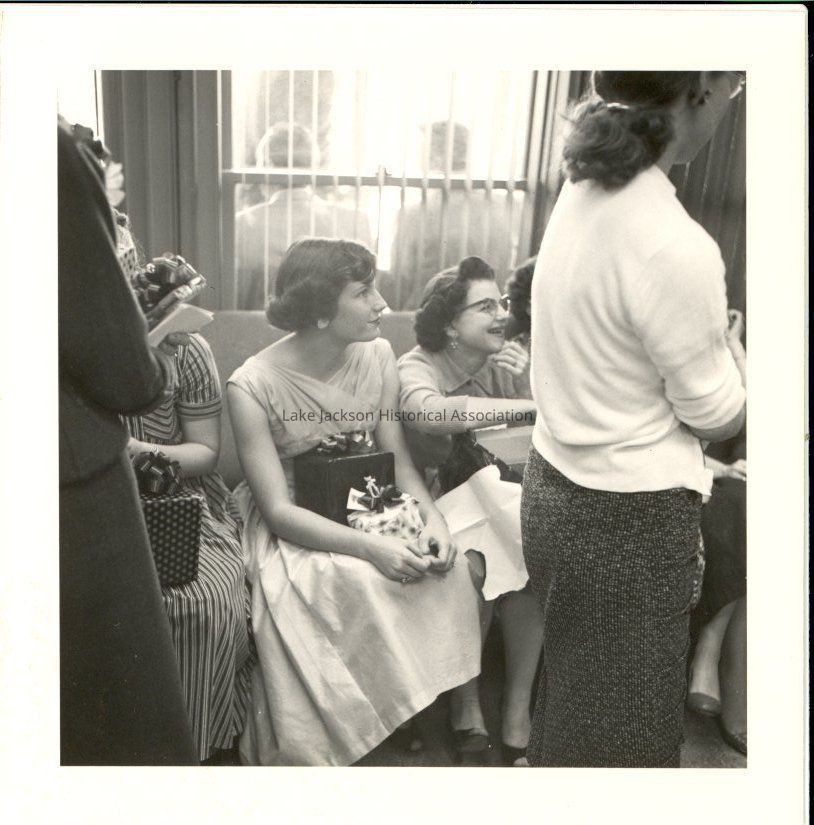 A black & white photo of men and women at a Christmas party.Collection