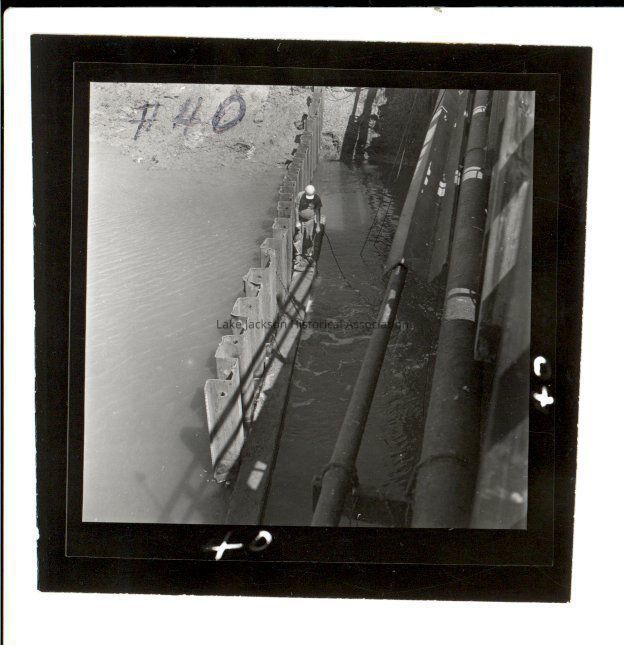 A black and white proof of a picture of water flooding part of the plant after Hurricane Carla.Collection