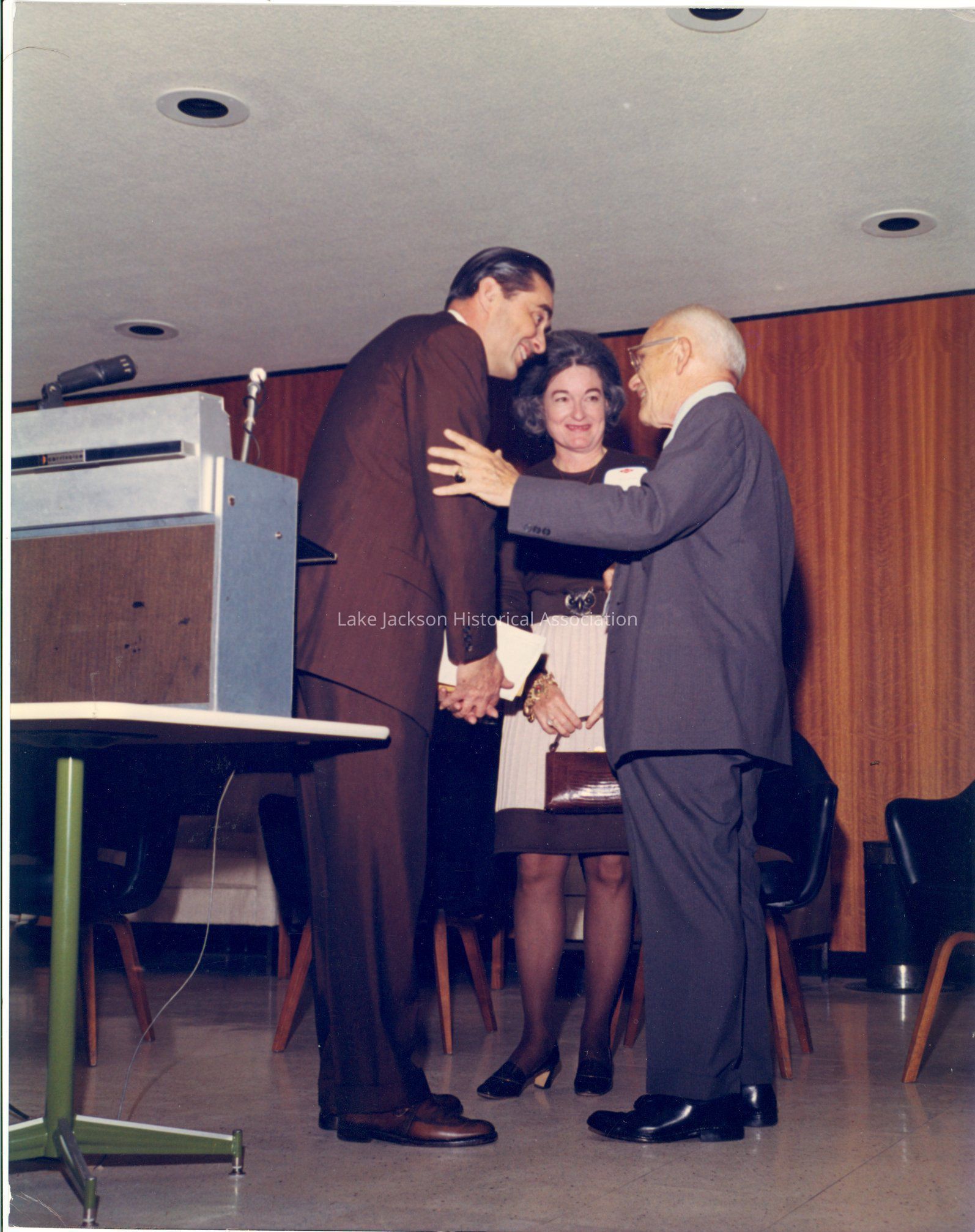 A color photograph of Dr. Beutel and Earl Barnes at the dedication of the A. P. Beutel Building.Collection