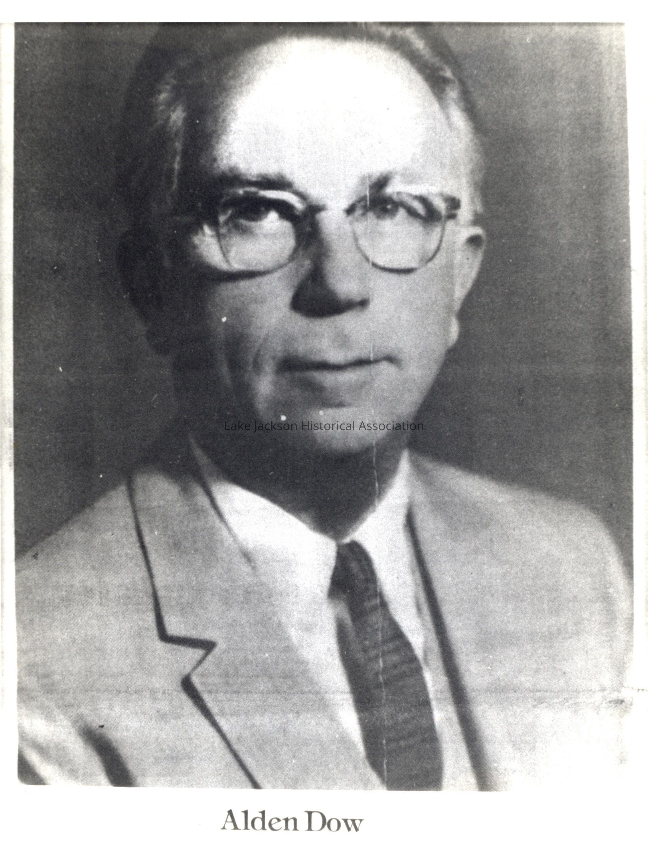 Black and white photo of a 3/4 view portrait of an older Alden Dow.Collection