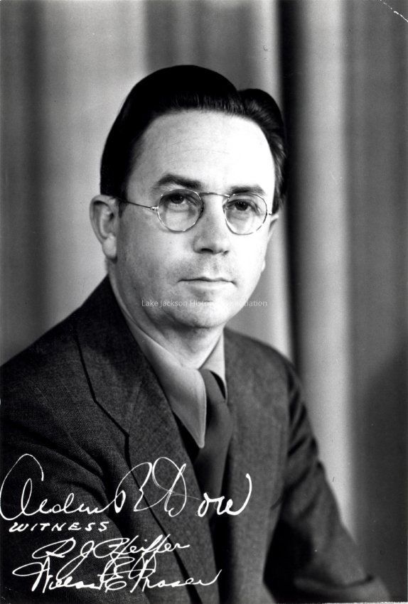 Black and whiteportrait of Alden Dow with his signature and two witness signatures, D.J. Pfeiffer and Willas E. Prosen ??Collection