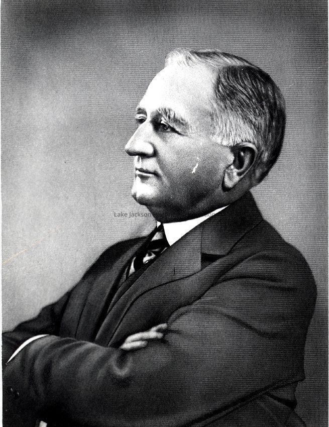 Black and white portrait photo of Herbert Henry Dow, his arms are folded and we have a profile view of him.Collection
