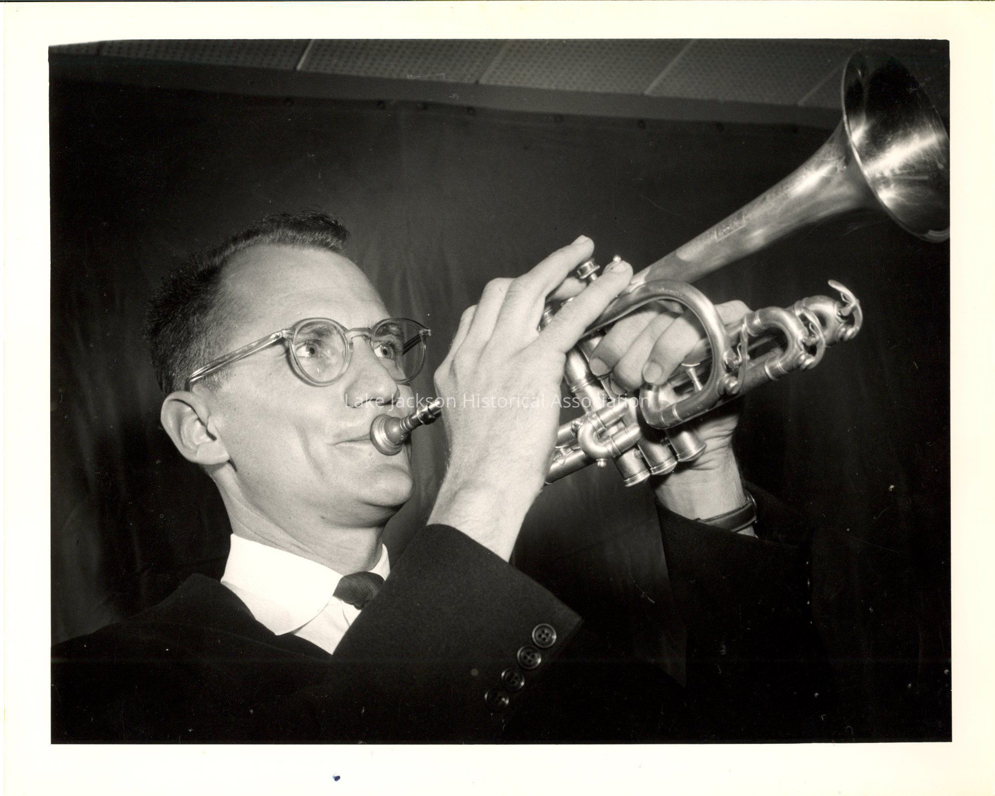 Black and White photo of Halloway playing the trumpet / cornet, he was a Dow Band member.Collection