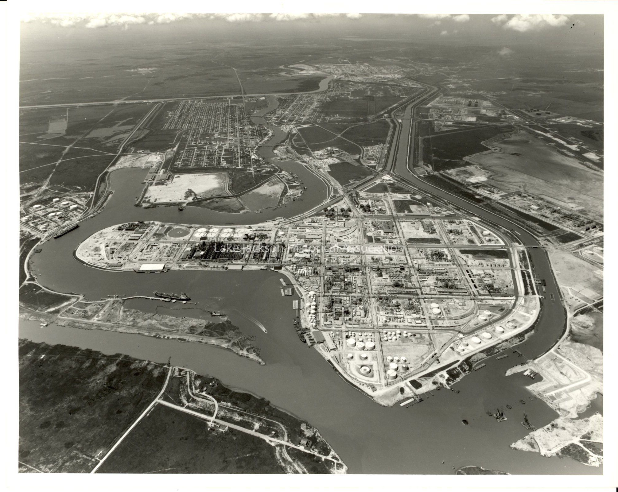 Black and White photo of the aerial view of Plant A. Taken in 1975