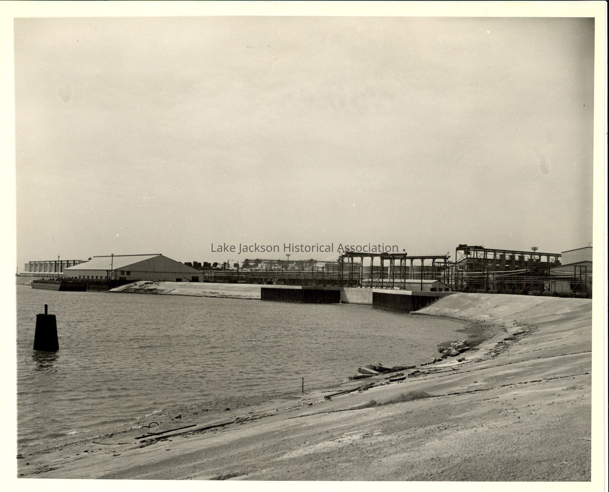 Black and White photo of the Caustic and Dow harbor at Plant A. Taken in the early 1970s.Collection