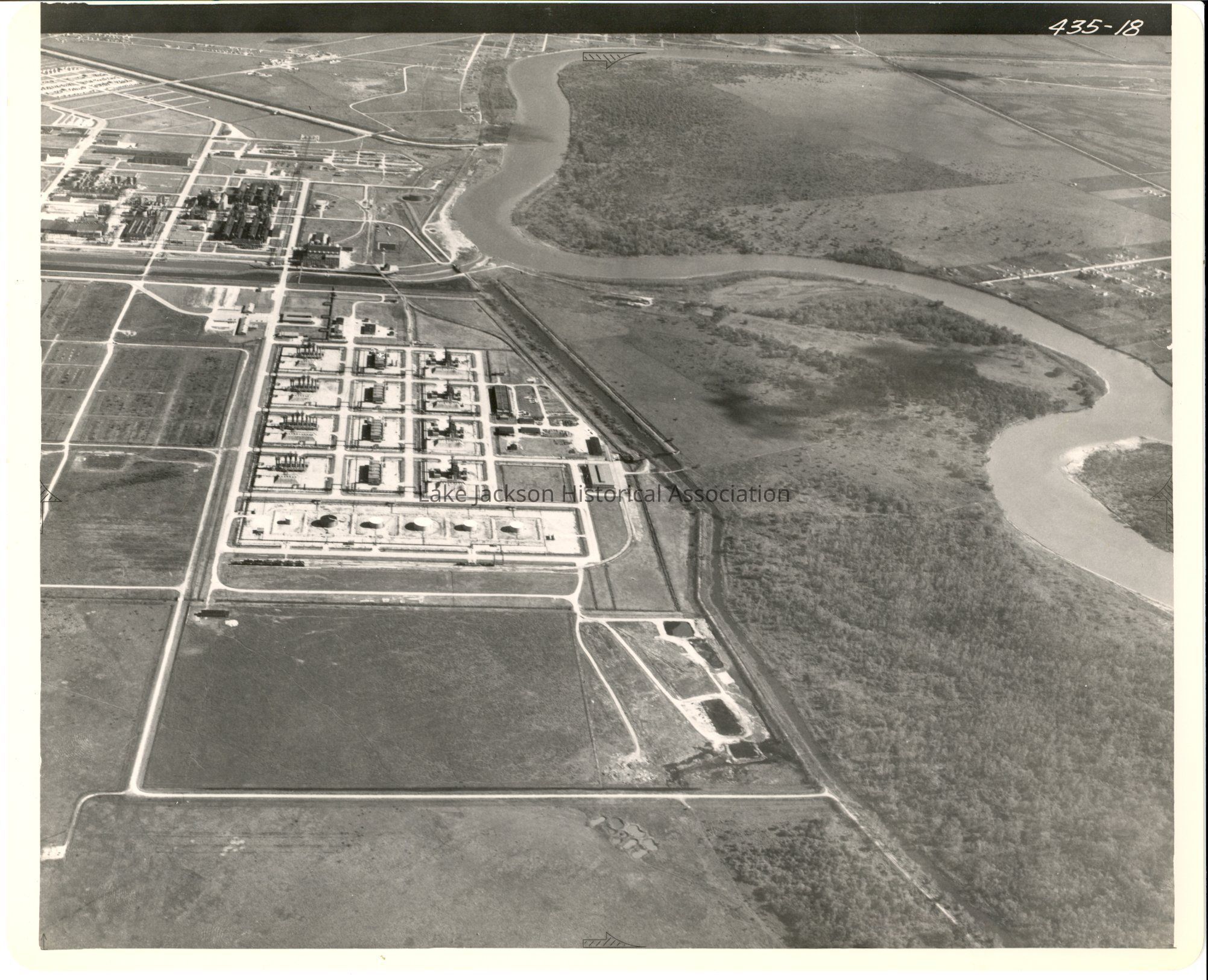 Black and white aerial photo of Dow Chemical Plant B. Taken on Novemeber 19, 1949.