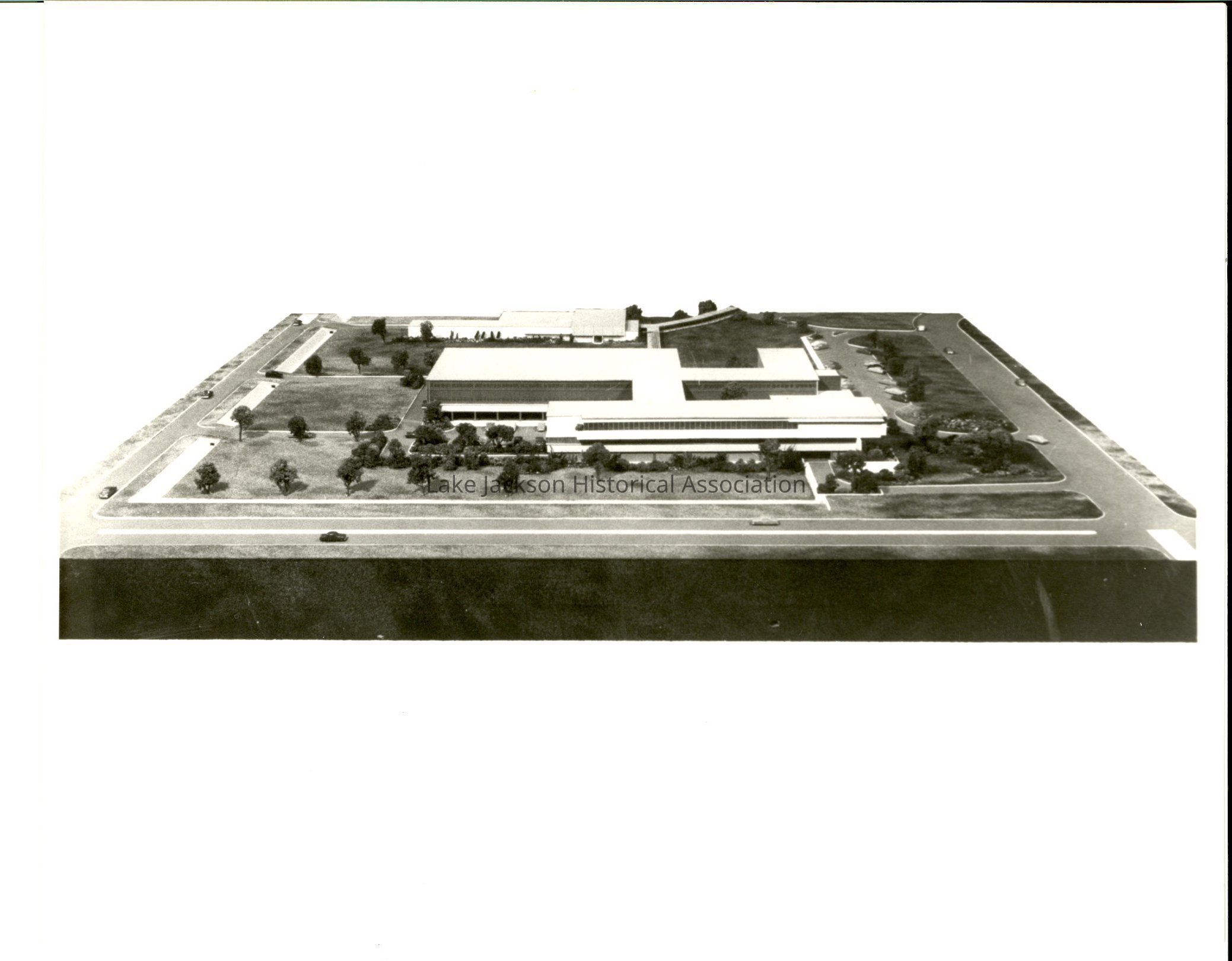 Black and white side view photo of a model of the A.P. Beutel Building that is located at Dow Chemical. Taken on February 3, 1956.Collection