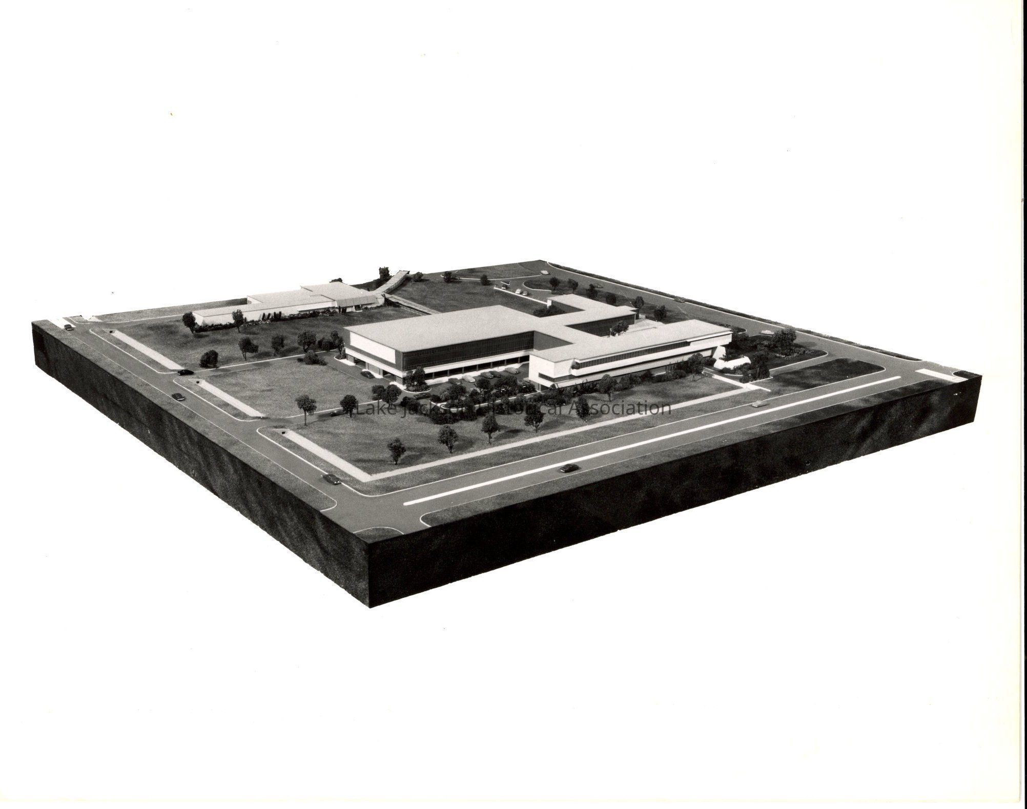 Black and white front angle photo of a model of the A.P. Beutel Building that is located at Dow Chemical. Taken on March 3, 1956.Collection