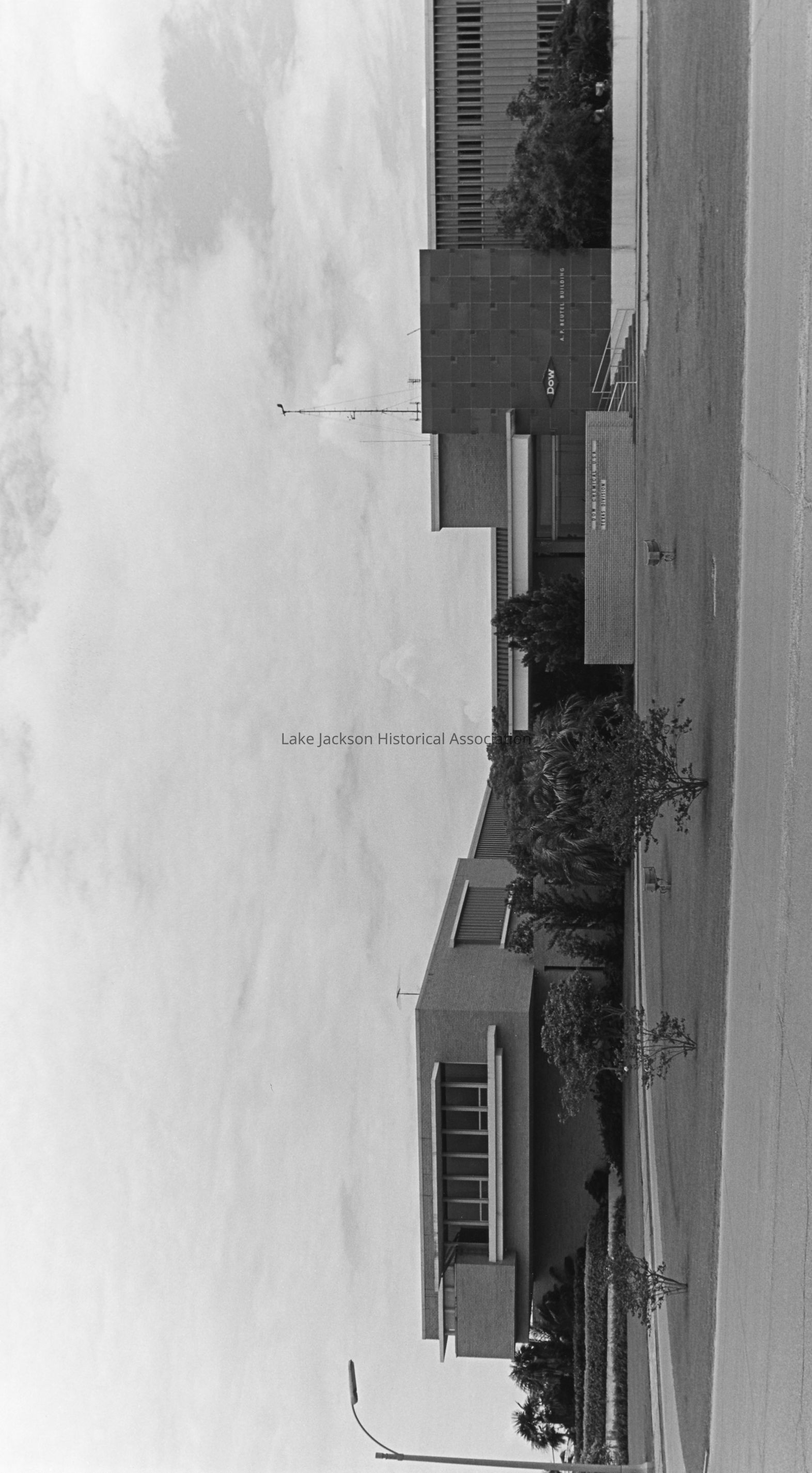 Black and white photo of the front of the A.P. Beutel building located at Dow.