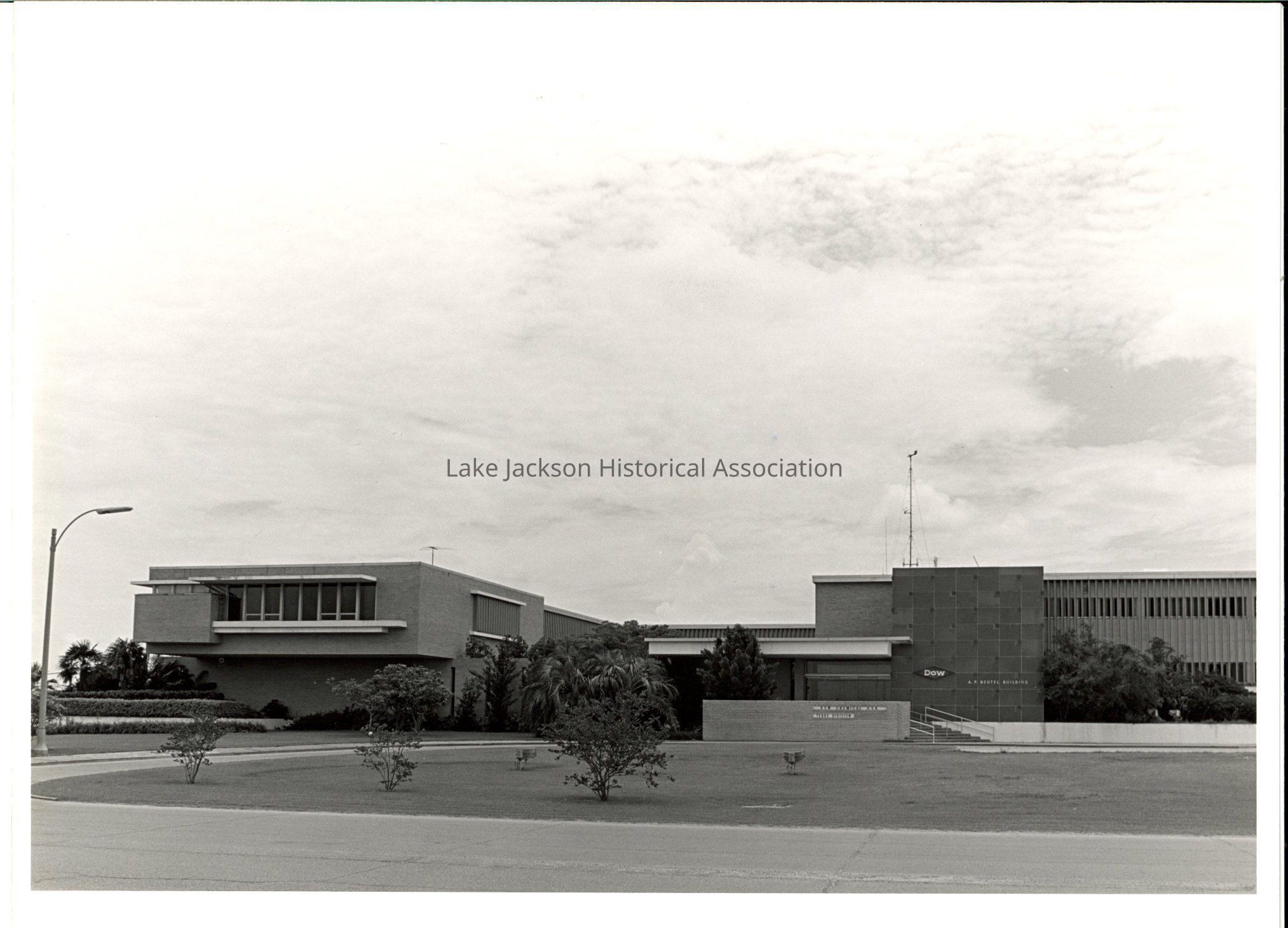 Black and white photo of the front of the A.P. Beutel building located at Dow.