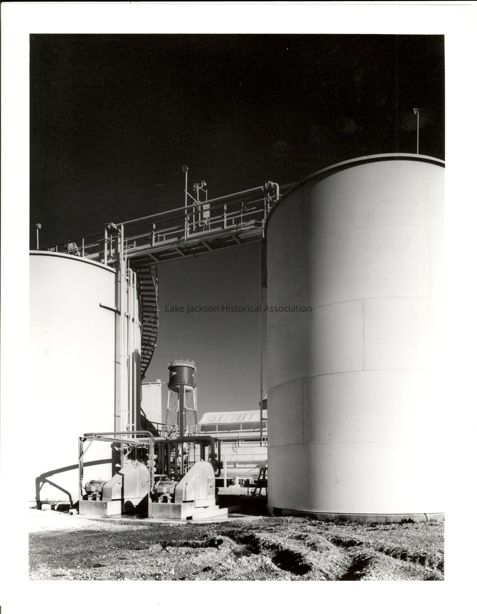 Black and white close-up photo of the storage tank section of the rotary filter process at Dow , at the stage pictured, the magnesium hydroxide is saturated with seawater, and as much of this as is possible must be removed in a filtering operation. The filters used are simply rotary driven which permit internal suction to be applied until a cake of magnesiom hydroxide about 1 1/2 inches is built up.Collection
