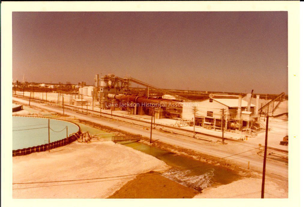 Color photo of Dorr Pond, and a shot of the lime kiln buildings and piping at the Dow plant.Collection