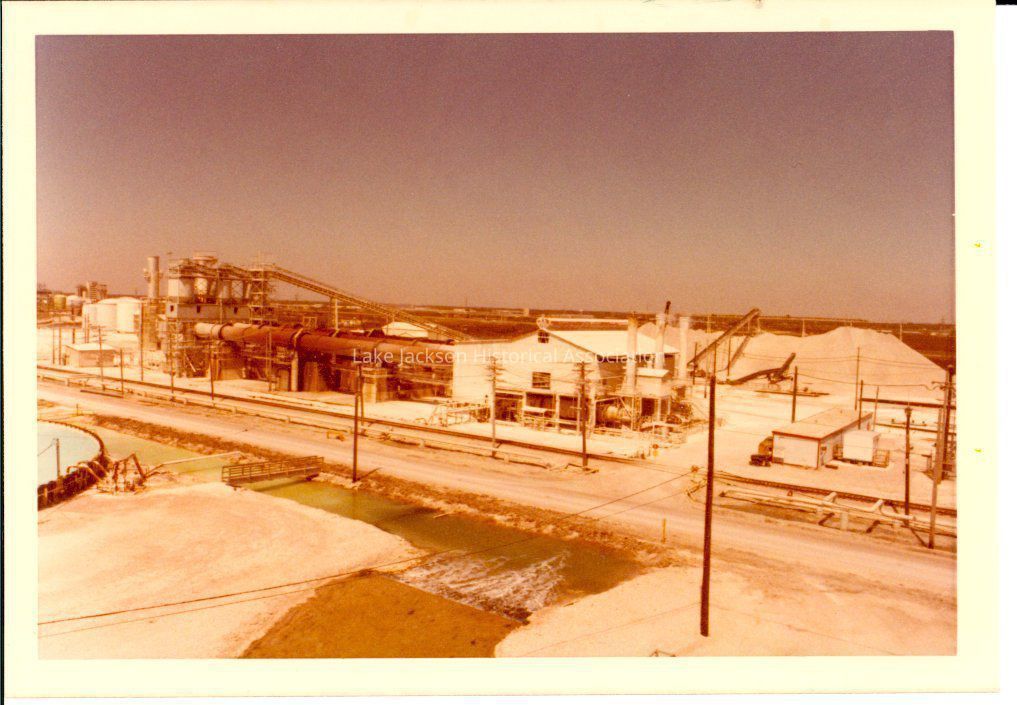 Color photo of Dorr Pond, and a shot of the lime kiln buildings and piping at the Dow plant. Focus more on the buildings of the lime kiln.Collection