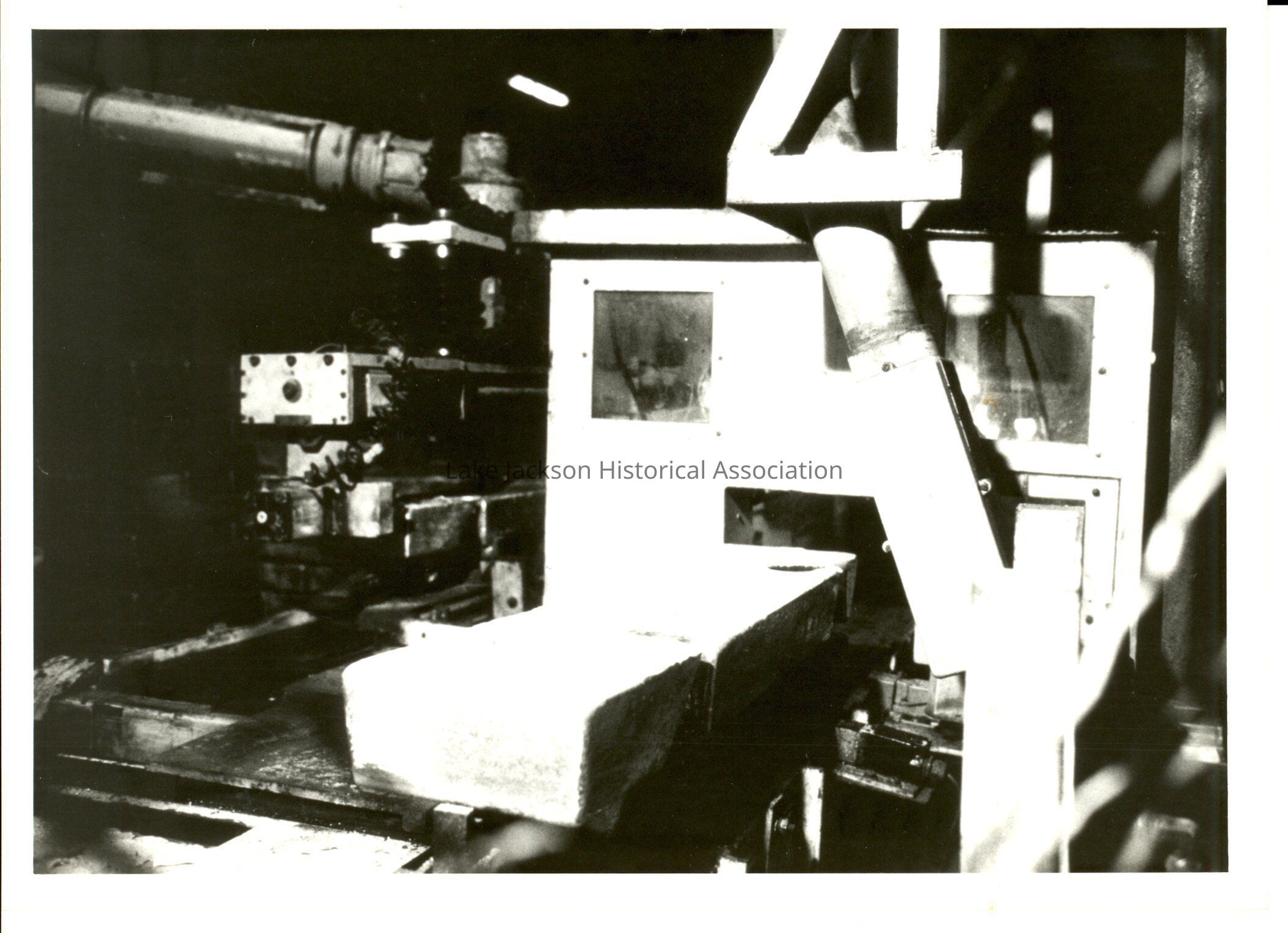 Black and white photo of a computerized camera at casting at Dows Plant A.