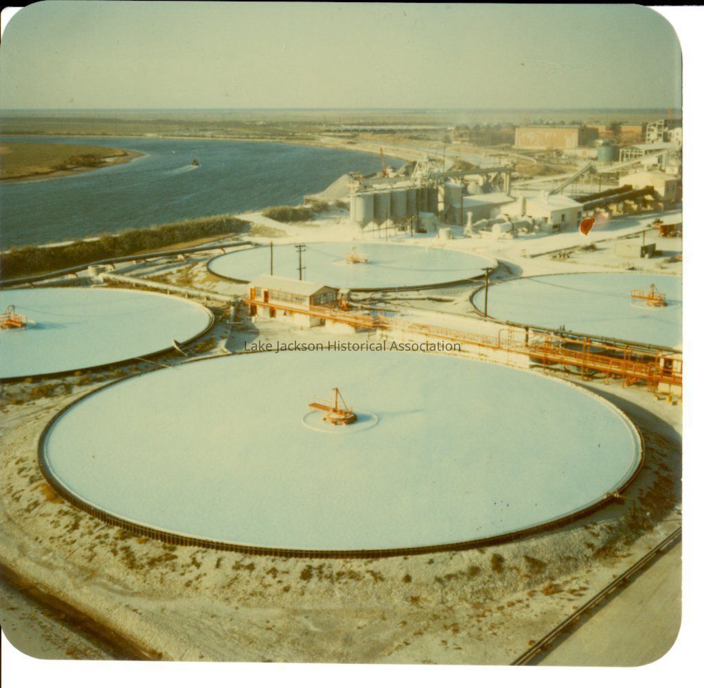 Color photo of the Dorr Ponds used in the magnesium making process at Dow.Collection