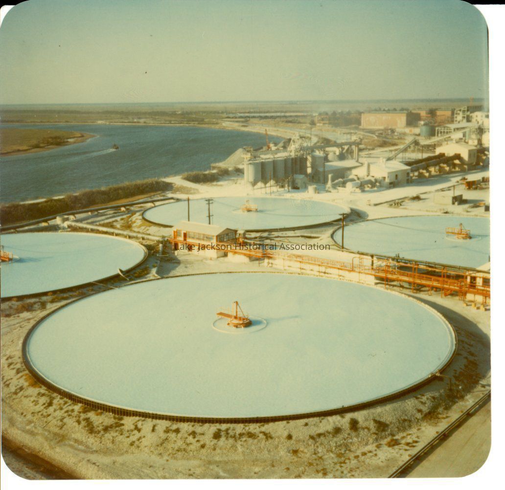Color photo of the Dorr Ponds used in the magnesium making process at Dow.Collection