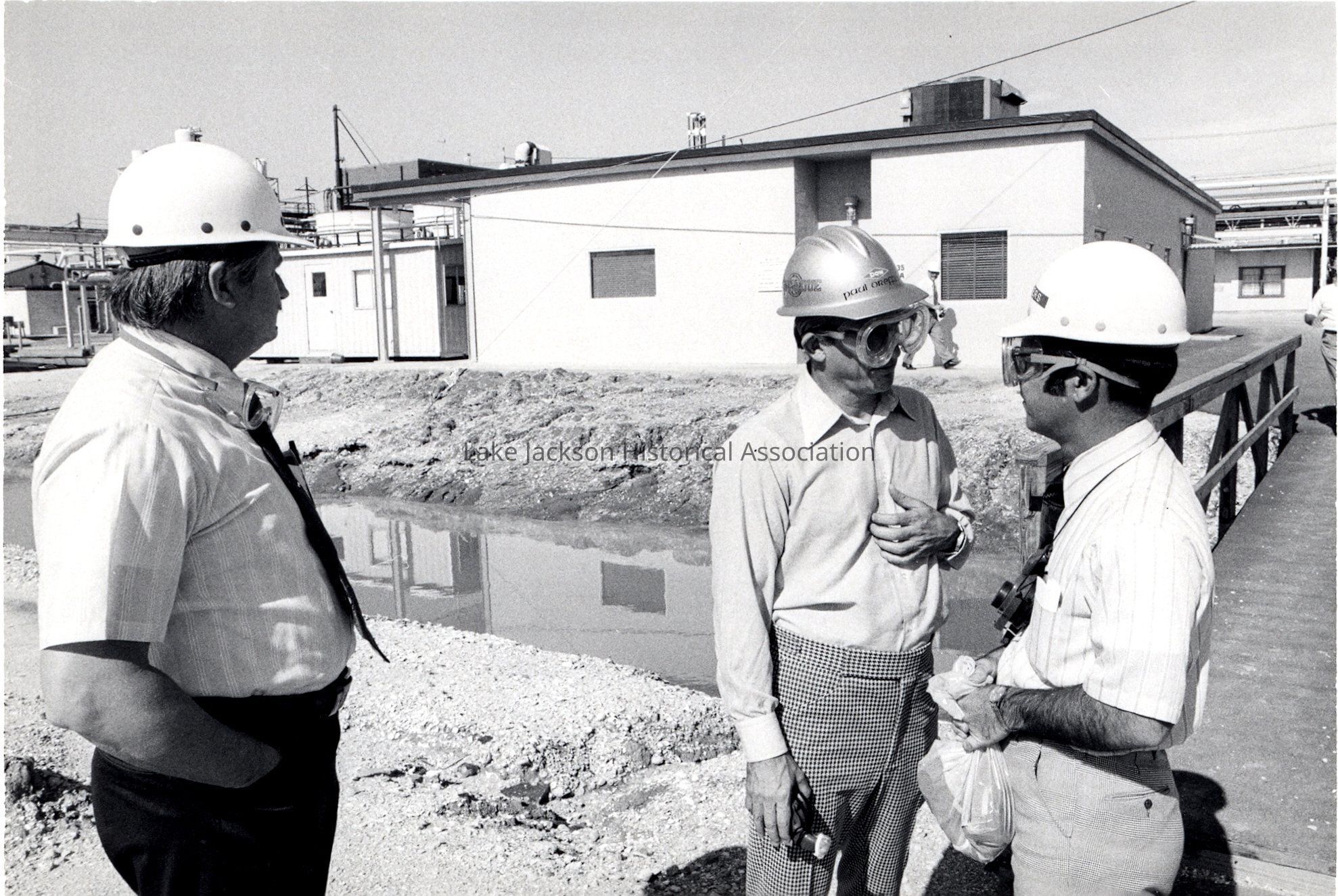 Black and white photo of President Paul Oreffice touring the Proplene Oxide plant at Dow.Collection