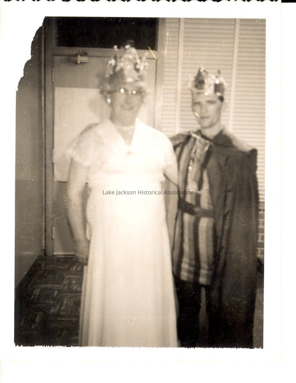 candid photograph of two unknown men in costume in school play "Cinderella"Collection