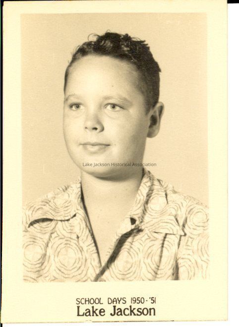 Black and white school picture of unknown male student. At bottom center is caption "School Days 1950-'51 / Lake Jackson".Collection