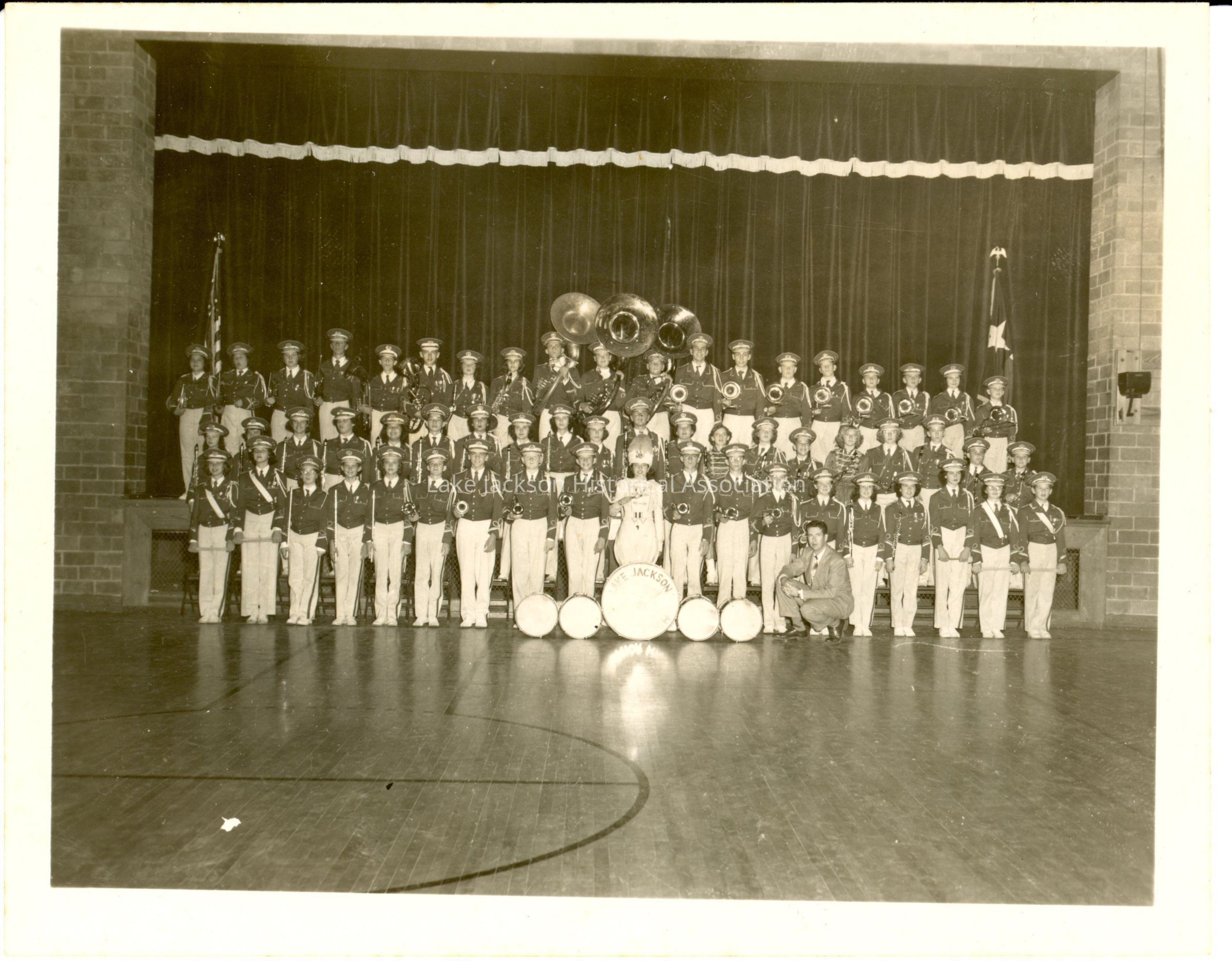 Black and white photo of Lake Jackson Intermediate School Band in the auditorium.Collection