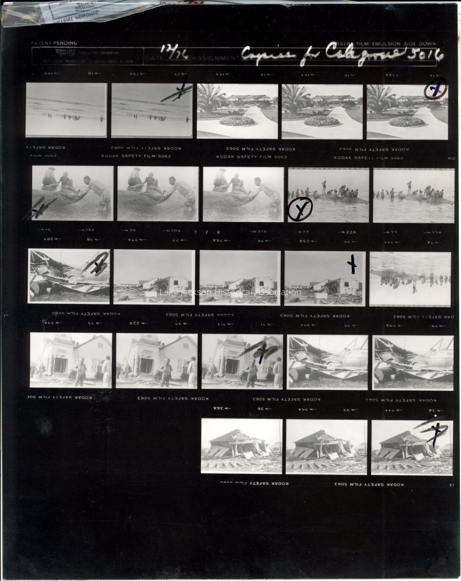 A sheet of negatives dated Dec. 1976, but scenes are from the 1940's.Collection