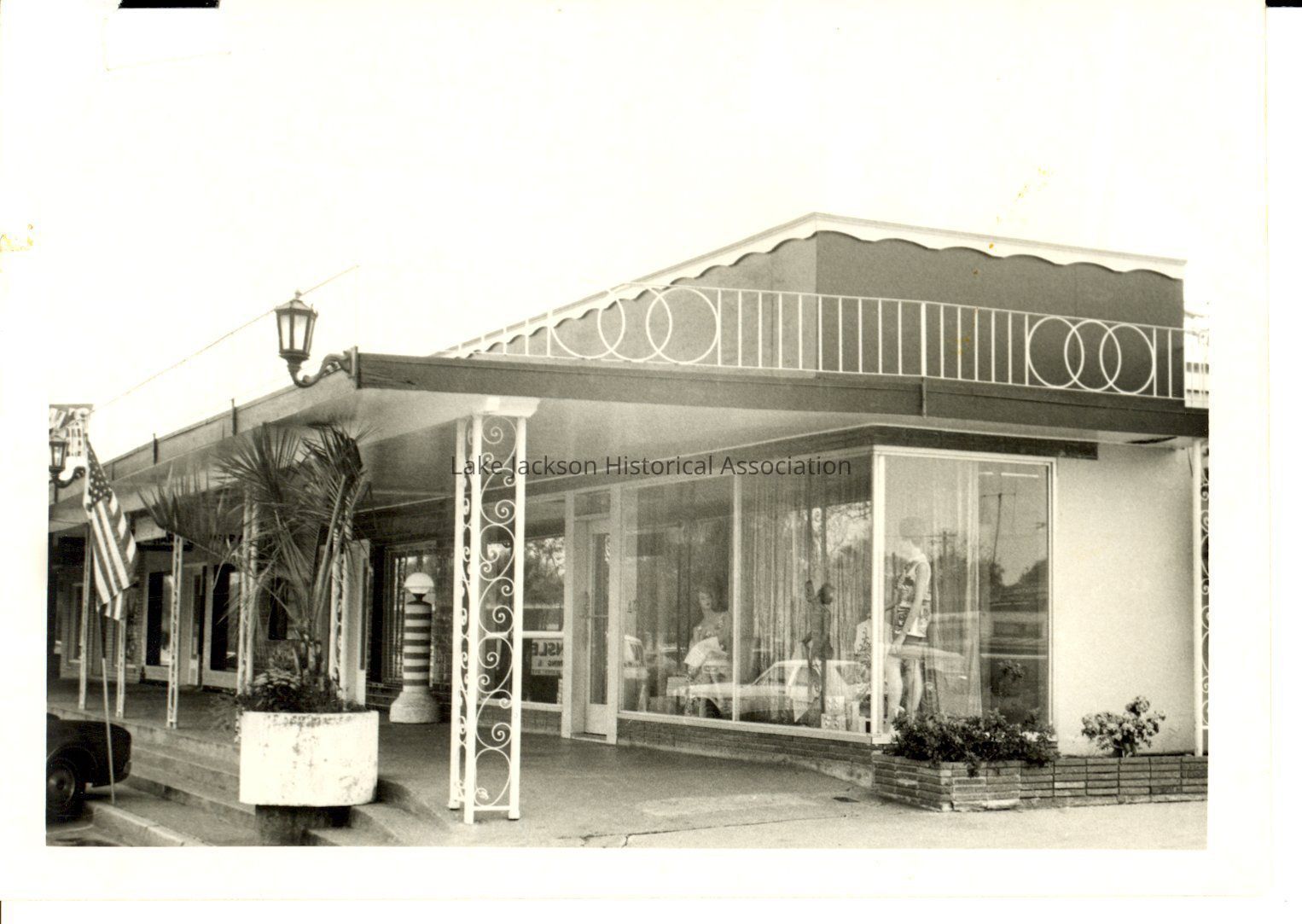 Black and white photo of the exterior of the LaVelle Shop owned and run by Julia May.Collection