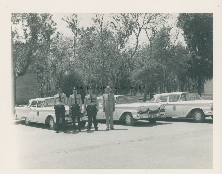 Black and White print - Lake Jackson police department officers. Ralph Smalley, Waler Henson, Joe Atchison, and Cap. Brown.Collection