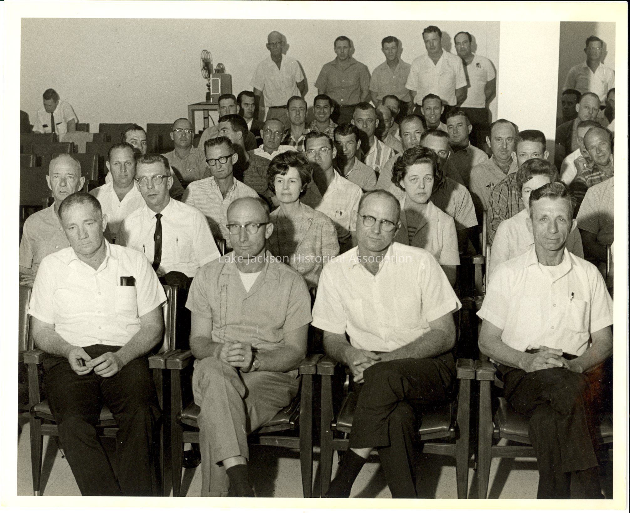 Black and white photograph of a group of employees. It appears to be the left side of a group photo. See 2003.7.40 for the right side.
