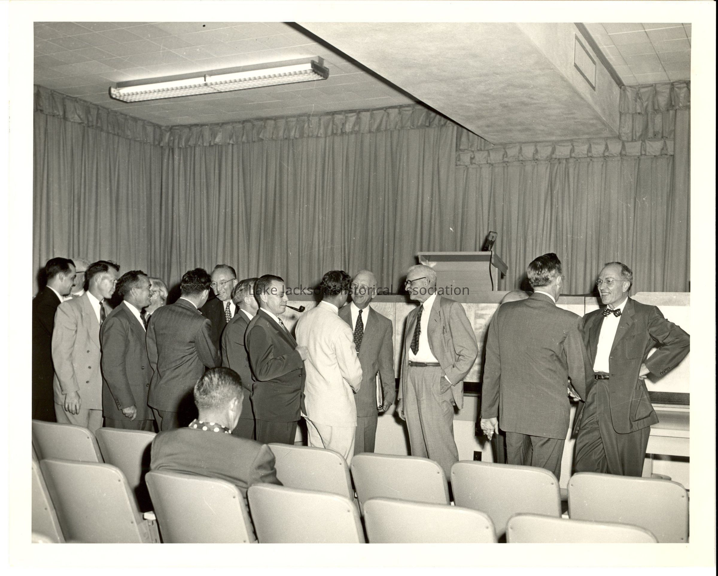 1- Black and white photo of a group of people with Dr. Beutel in an auditorium.Collection