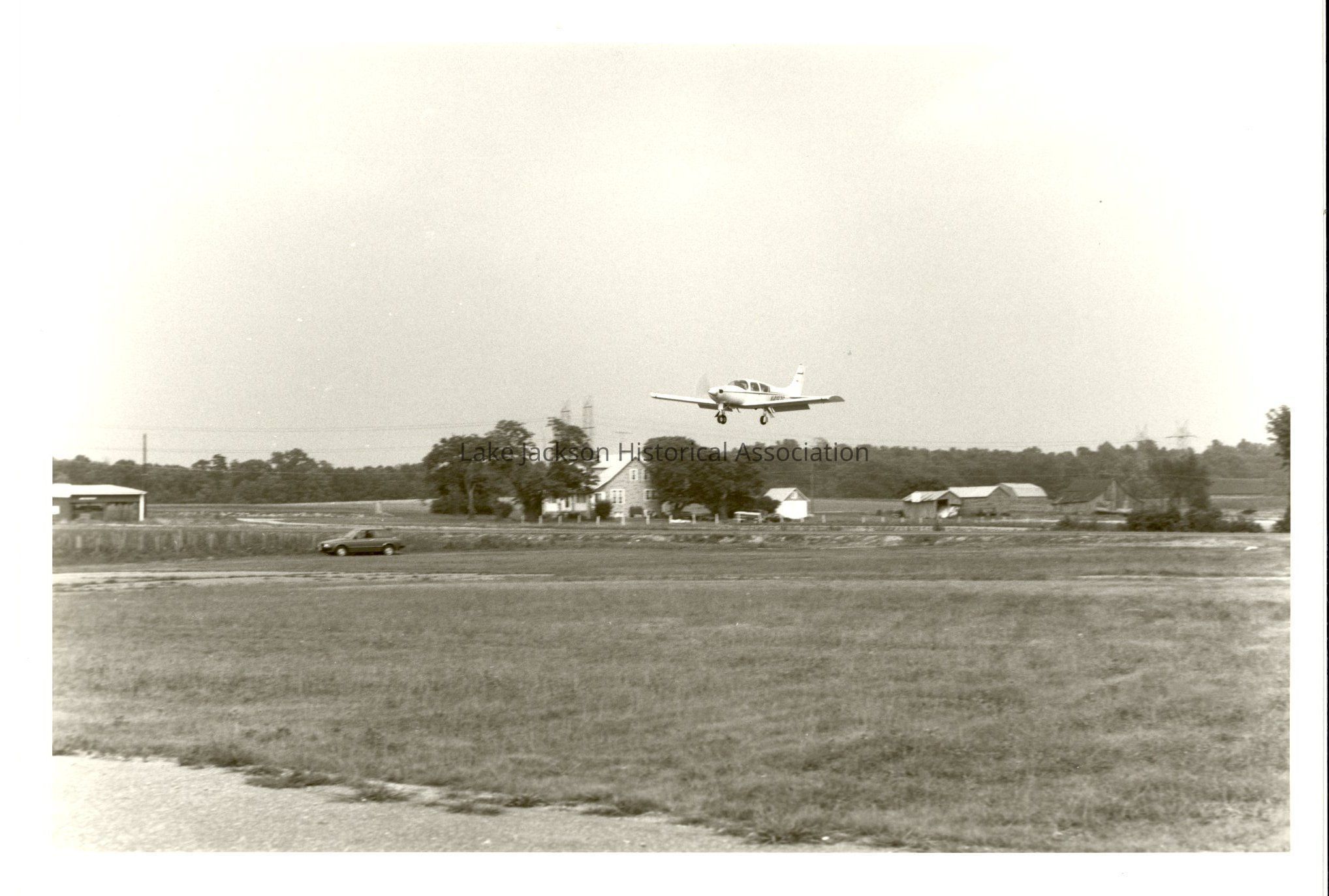 1- Black and white photo of the Windecker plane flying on July 22, 1985. On the back, written in blue ink at the top is "7-22-85" and along the right side in blue ink is "85-11224-21A".Collection