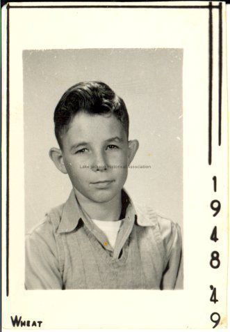 Black and white school picture of Eugene Foster. Identification is from an enclosed list. At the lower left is "Wheat". Along the lower part of the right margin is printed vertically "1948 '49". A line border surrounds the picture.Collection