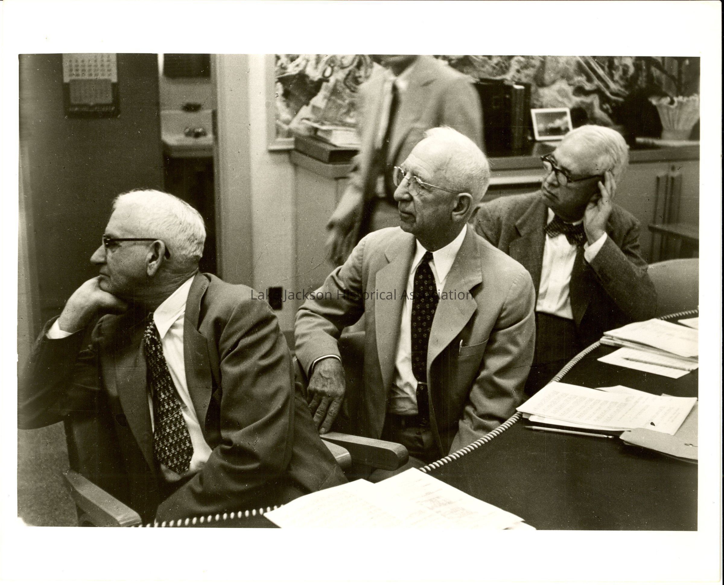 1- Black and white photo of three men sitting at what looks like Dr. Beutel's desk.Collection