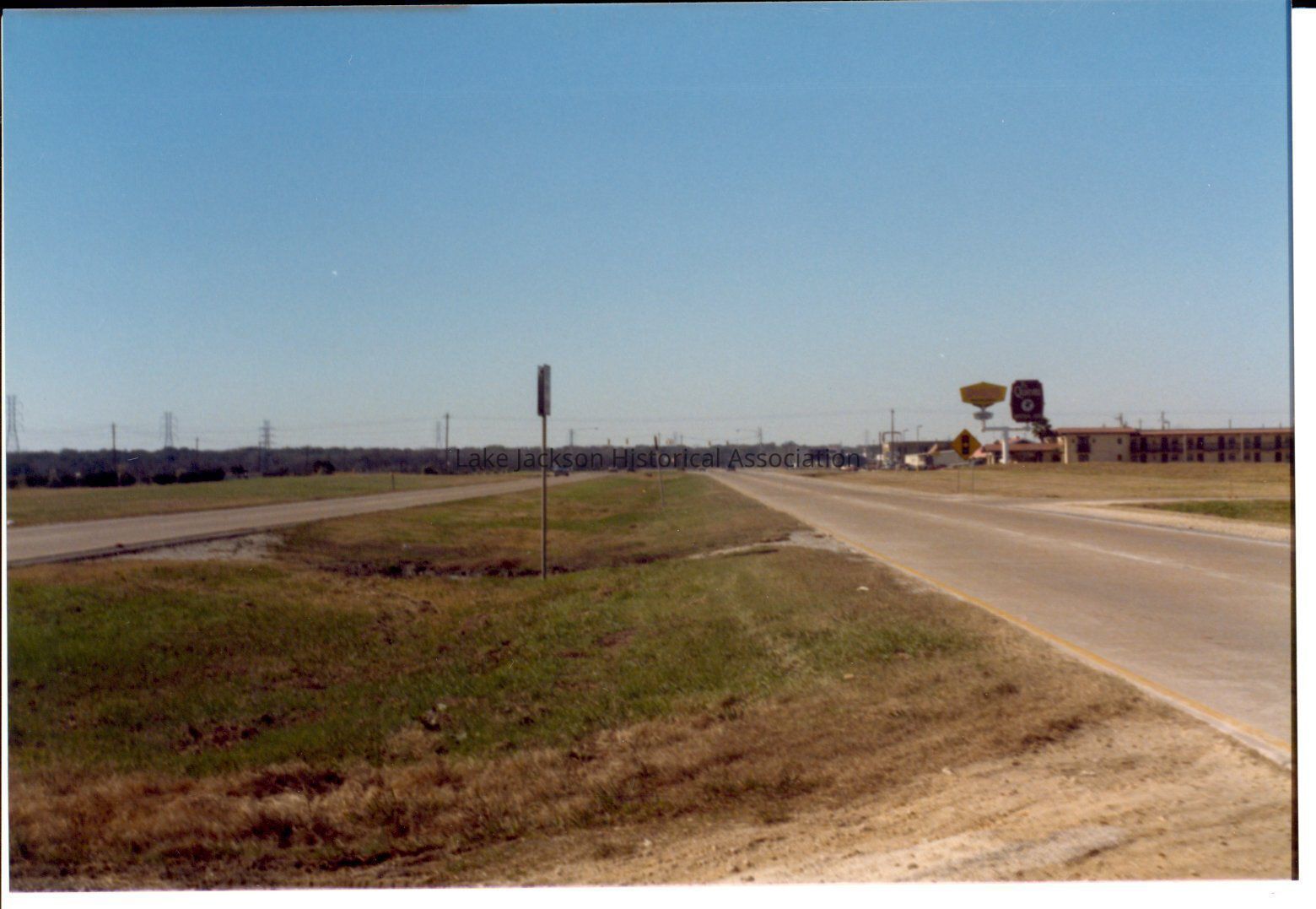 Color photograph. LaQuinta and Denny's at Lazy Lane [Clute] - looking north.