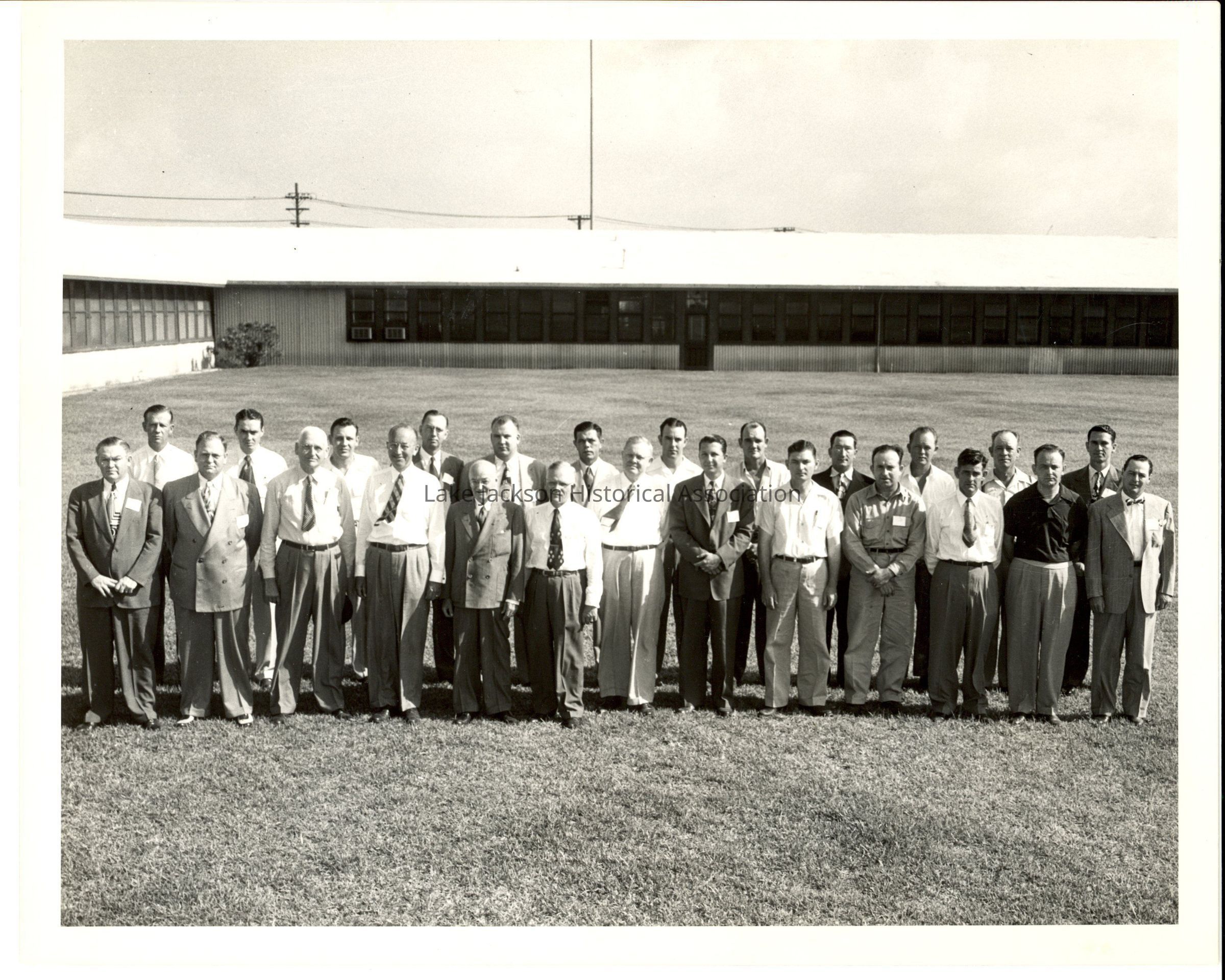 1- Black and white photo of Dr. Beutel with a large group of men outdoors.Collection
