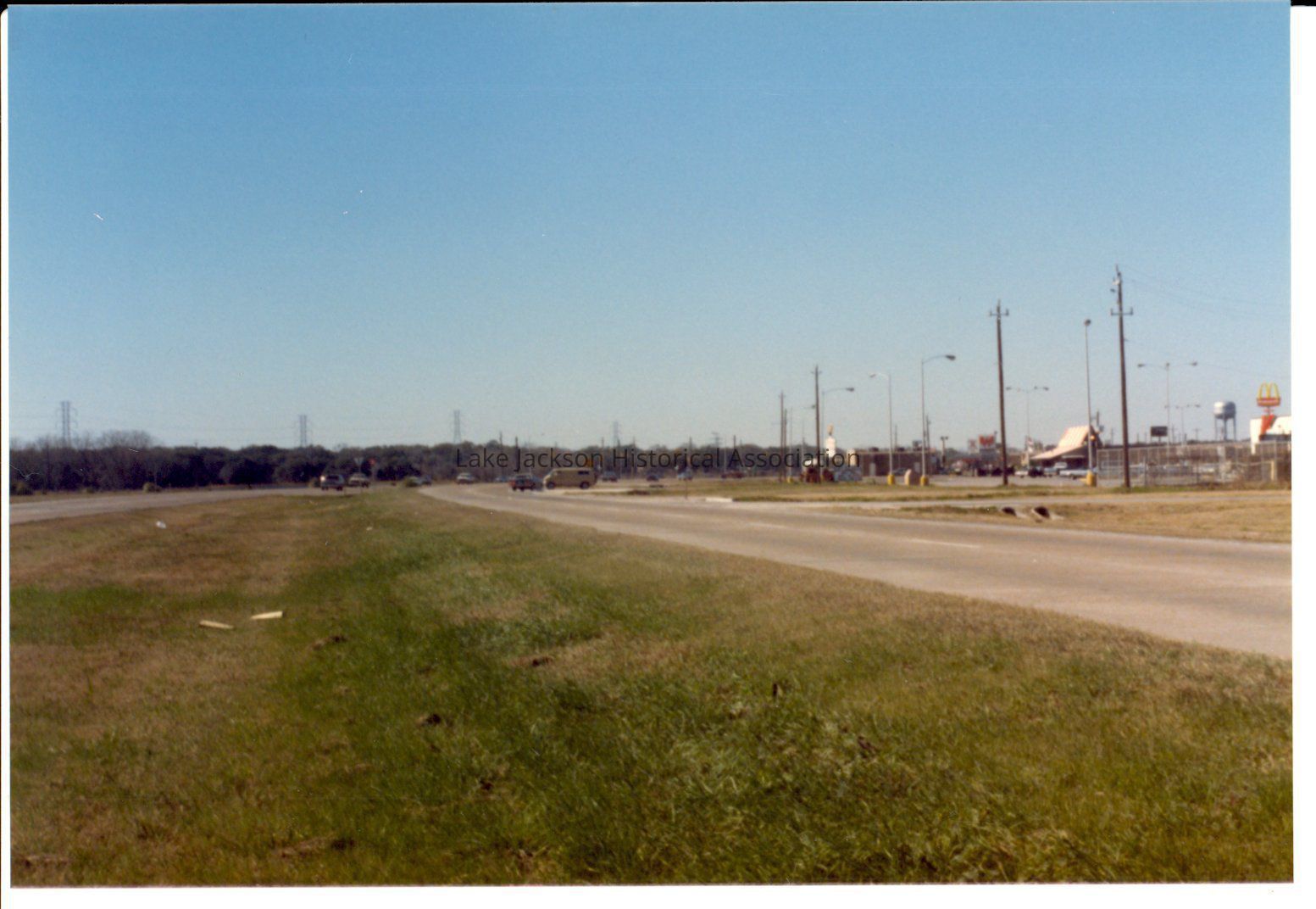 Color photograph. Highway 332 at Dixie Drive looking north. McDonald's and Whataburger on the right.