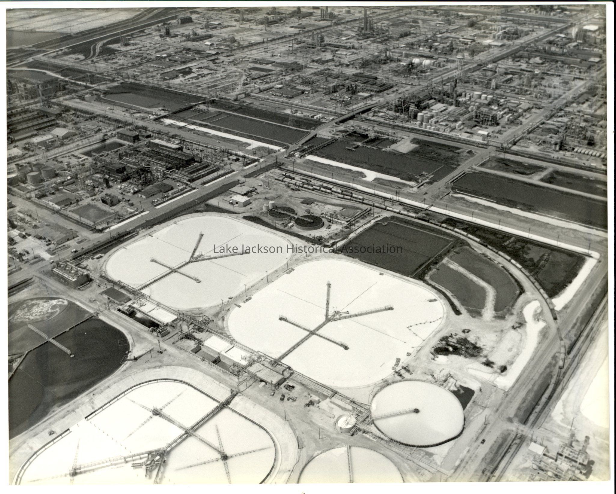 A black & white aerial photo of Plant B overlooking Dorr ponds.Collection