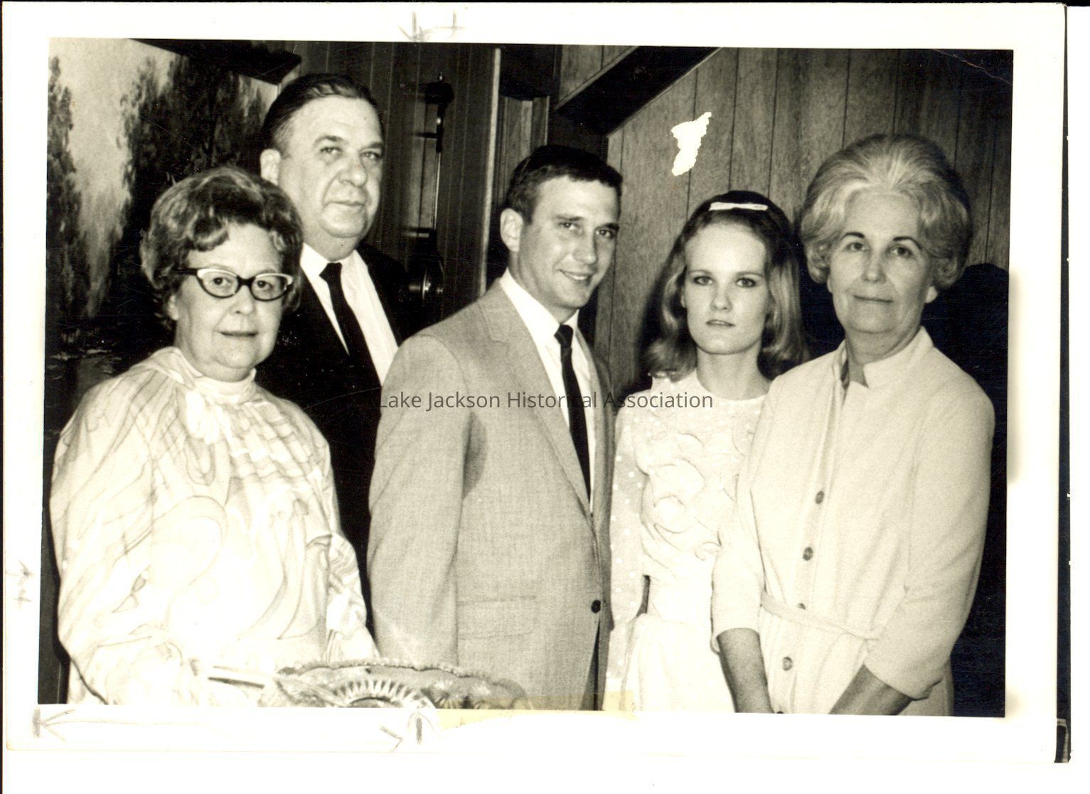 Dr. Ralph Edward Gray standing behind his wife, Evelyn T. "Bunny" Gray, with three unidentified people on their right.Collection