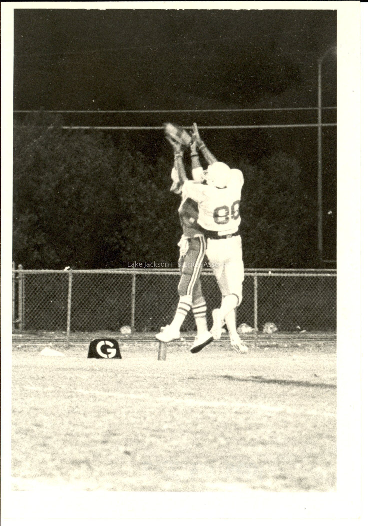 1- Black and white photo of a Buccaneers player and another player jumping in the air to get the ball.Collection