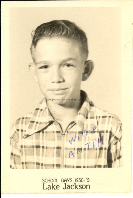 Black and white school picture of Willie Antill. The name is from an enclosed guide sheet. At the bottom center is the caption "School Days 1950-'51 / Lake Jackson".