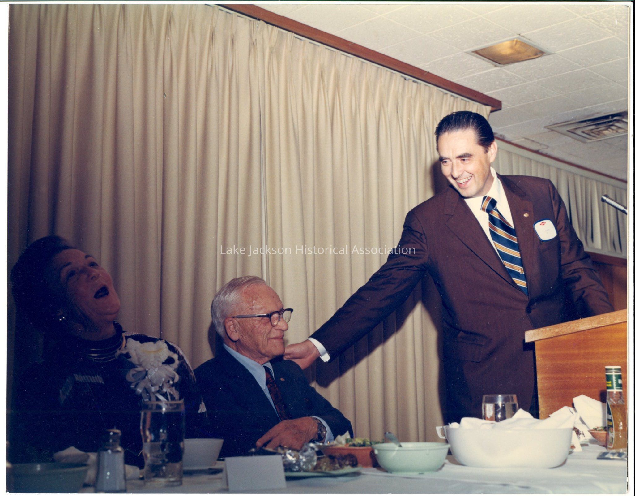 A color photograph of Dr. Beutel, his wife, and Earl Barnes at the dedication of the A. P. Beutel Building.Collection