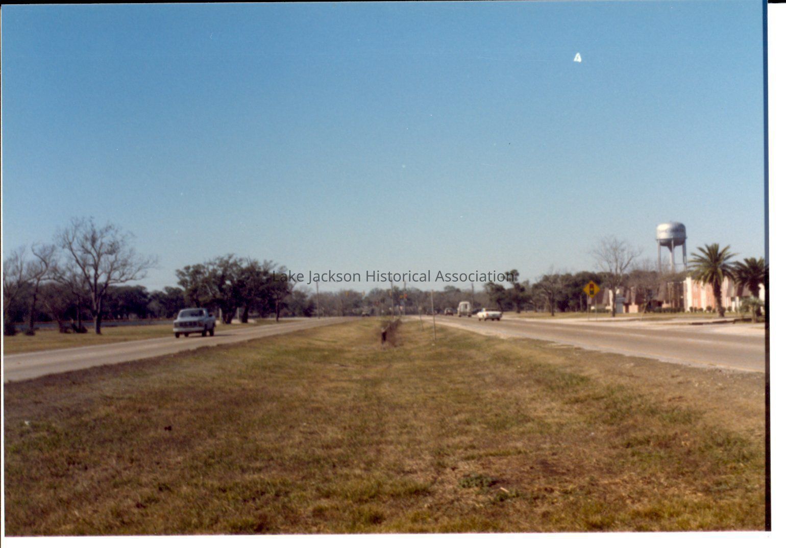 Color photograph. Highway 332 at Sycamore with apartments on the right.