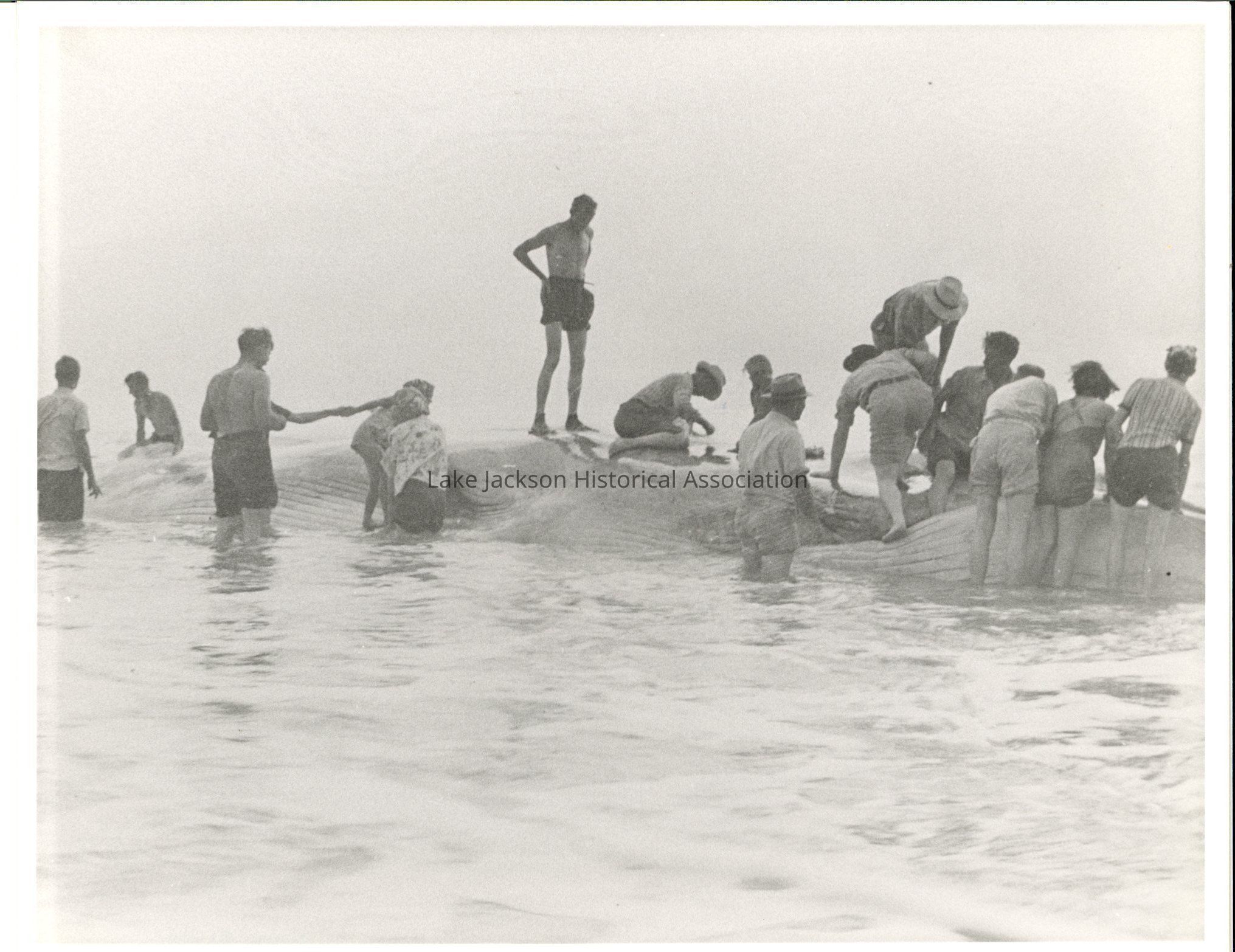 B & W Photo of a large whale that washed ashore at Surfside in 1941.Collection