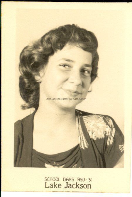 Black and white school picture of an unknown female student. At the bottom center is the caption "School Days 1950-'51 / Lake Jackson".Collection