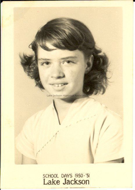 Black and white school picture of an unknown female student. At the bottom center is the caption "School Days 1950-'51 / Lake Jackson".Collection