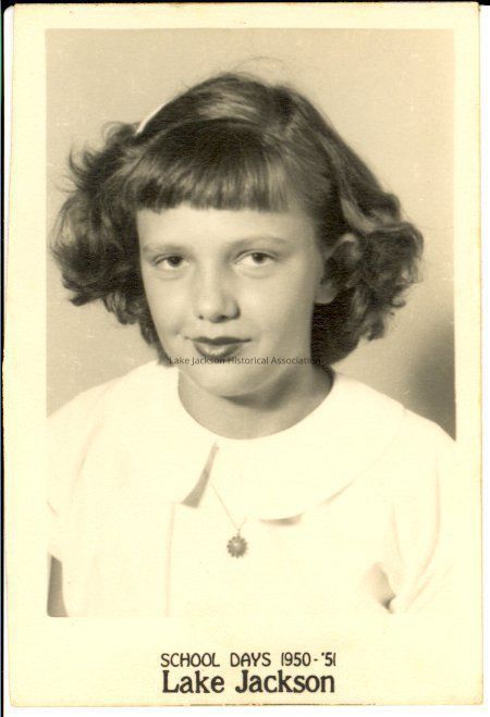 Black and white school picture of an unknown female student. The name is from an enclosed guide sheet. At the bottom center is the caption "School Days 1950-'51 / Lake Jackson".Collection