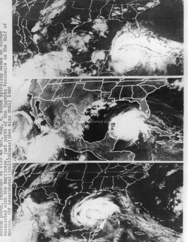 B/W Extreme aerial photo of the Gulf of Mexico during Hurricane Allen in 1980.Collection