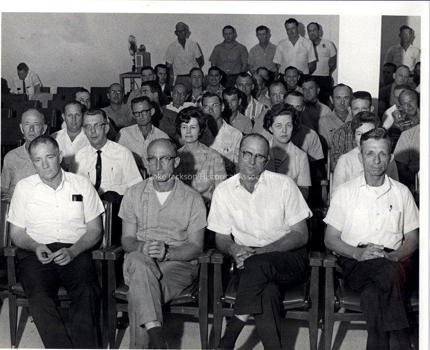 Black and white photograph of a group of employees. It appears to be the left side of a group photo. See 2003.7.40 for the right side.