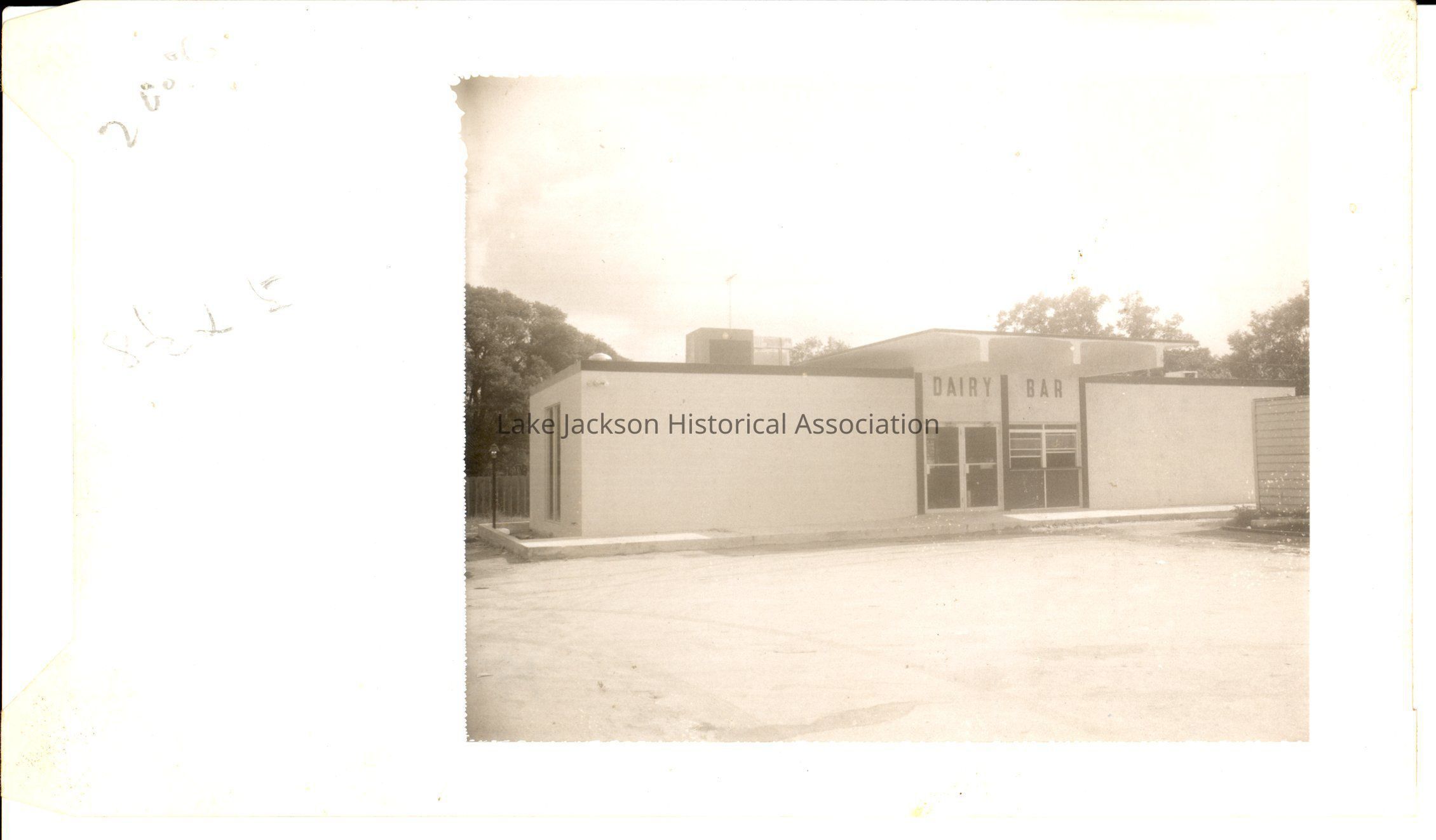 1- Black and white photo of the exterior of the Dairy Bar. Owned by Mr. Harnden.Collection