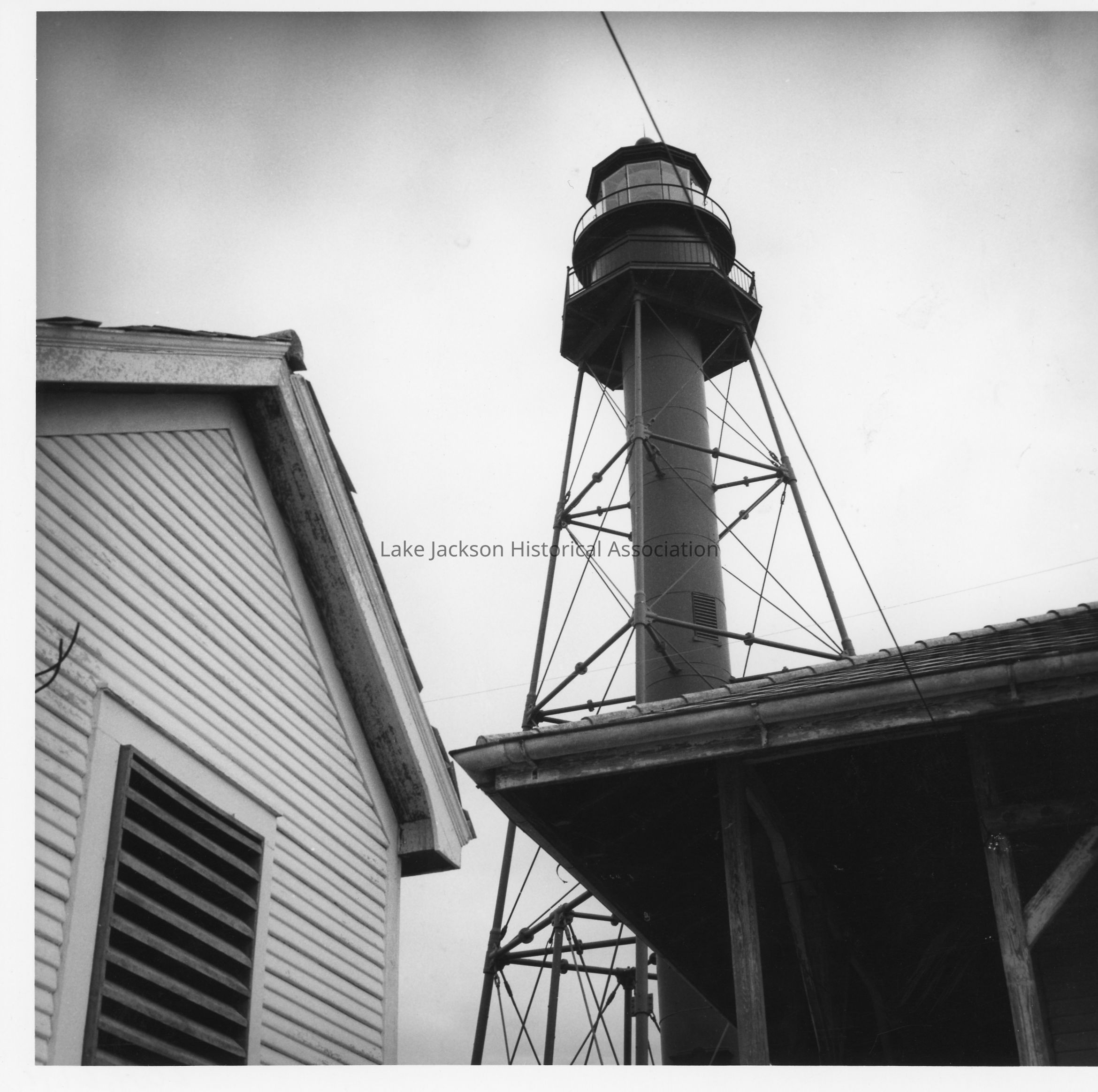 B/W photo of the Brazos River lighthouse deconstruction.